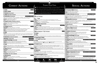 New to Pathfinder 2e or easily overwhelmed by your options? This basic action cheat sheet includes the most common actions players may take during combat and social encounters. This 11x17" player aid is useful for both players and GMs, as a physical printout or digital asset.